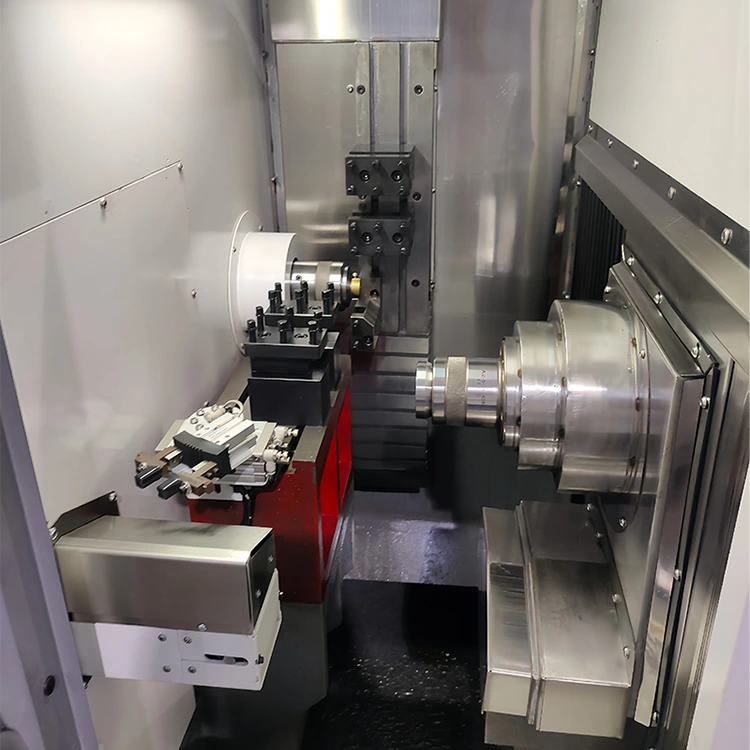 ● Aiseanna Servo-tiomáinte: Nascann mótair servo dé-chainéil X, Z, agus A ais go díreach le scriúnna liathróid cruinneas, ag laghdú dífhoirmiúchán torsional le linn ciorruithe tapa nó trom.