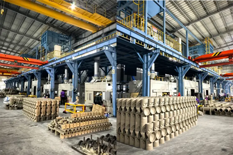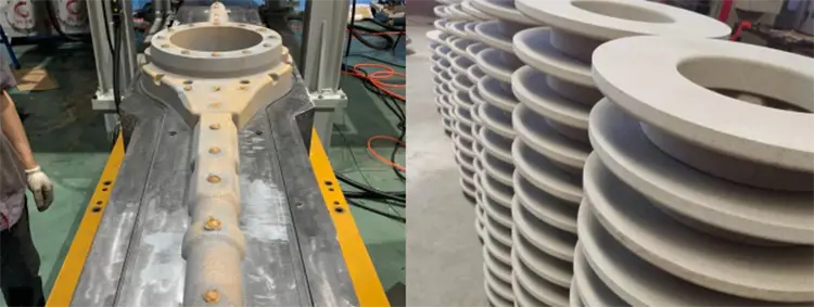 Ráta Toradh Ard: Tá modh lámhach gaineamh ingearach den scoth, struchtúr meicniúil beacht ardleibhéil, feidhmíocht ard-saothraithe, fórsa lámhaigh gainimh láidir, croíleacáin ghainimh daingean agus réidh, toisí beachta, agus croise ardcháilíochta le ráta ardthoradh le ráta ard-easnaimh, toisí beachta, agus croíleacáin ardcháilíochta le ráta ard-toradh. Is féidir leis an liúntas meaisínithe de theilgean a rialú go héifeachtach.